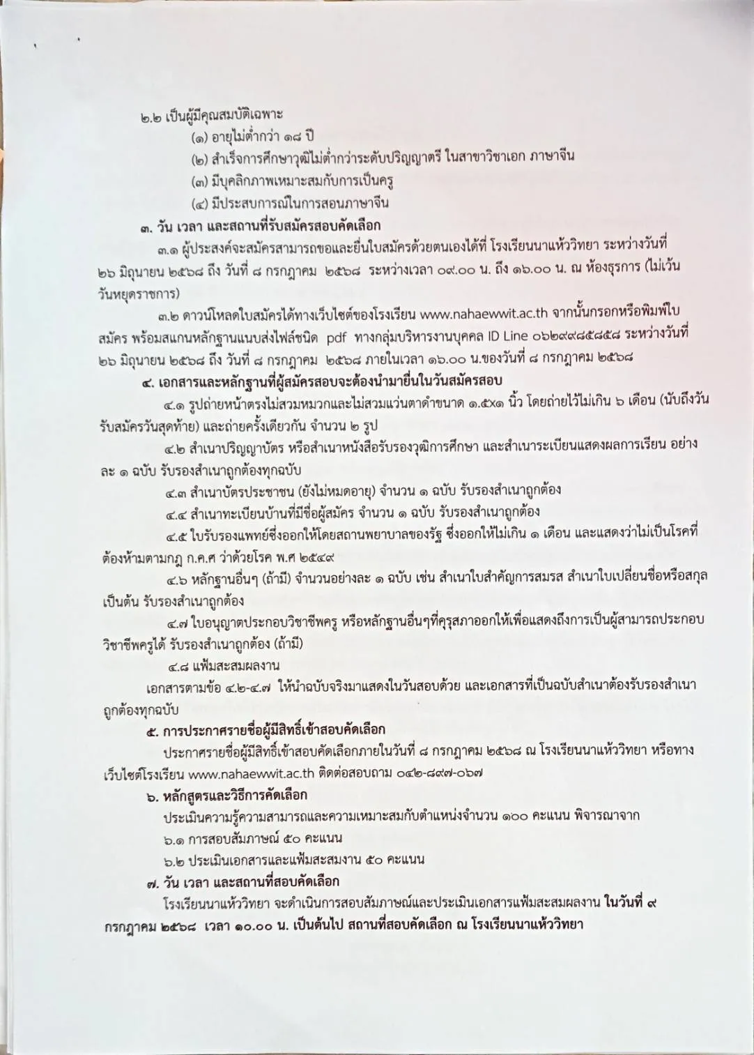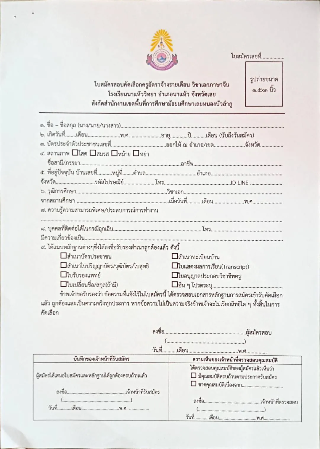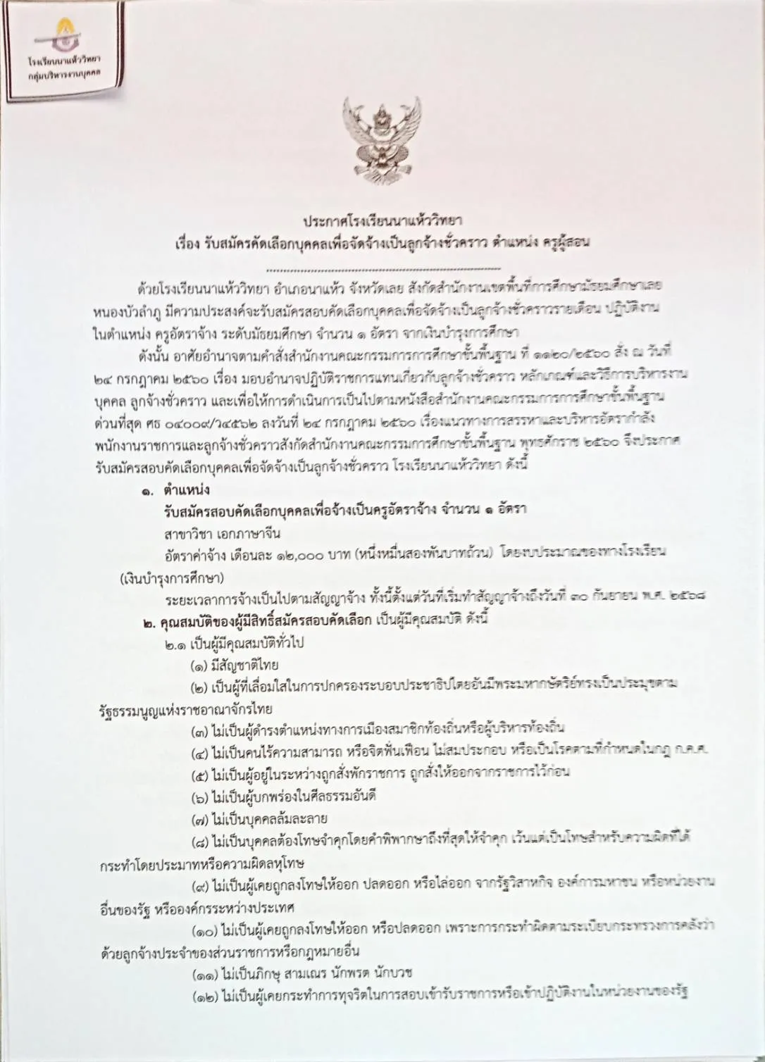 📌 ประกาศรับสมัครบุคคลเพื่อจัดจ้างเป็นลูกจ้างชั่วคราว ตำแหน่งครูผู้สอน วิชาเอกภาษาจีน