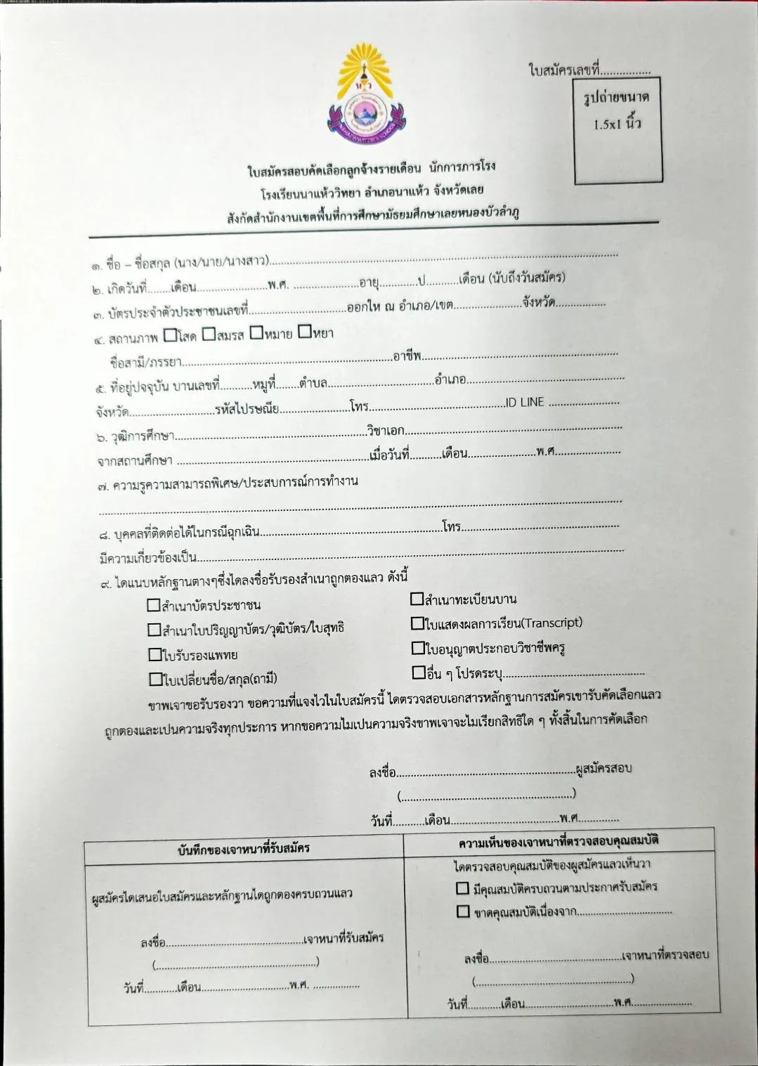 โรงเรียนนาแห้ววิทยาเปิดรับสมัครลูกจ้างชั่วคราว ตำแหน่ง "นักการภารโรง"