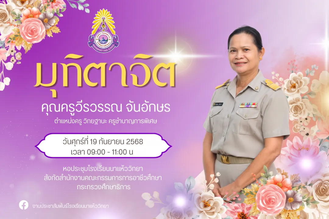 โรงเรียนนาแห้ววิทยาขอเชิญร่วมพิธีมุทิตาจิต คุณครูวีรวรรณ จันอักษร