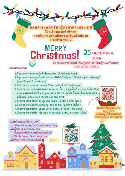 กลุ่มสาระการเรียนรู้ภาษาต่างประเทศ ขอเชิญชวนนักเรียนร่วมกิจกรรม วันคริสต์มาส ประจำปีการศึกษา 2567