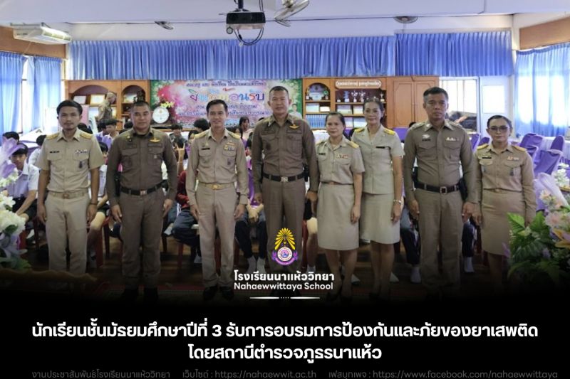 นักเรียนชั้นมัธยมศึกษาปีที่ 3 รับการอบรมการป้องกันและภัยของยาเสพติดโดยสถานีตำรวจภูธรนาแห้ว