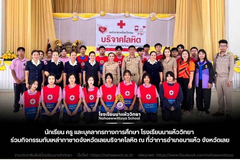 นักเรียน ครู และบุคลากรทางการศึกษา โรงเรียนนาแห้ววิทยา ร่วมกิจกรรมกับเหล่ากาชาดจังหวัดเลยบริจาคโลหิต ณ ที่ว่าการอำเภอนาแห้ว จังหวัดเลย