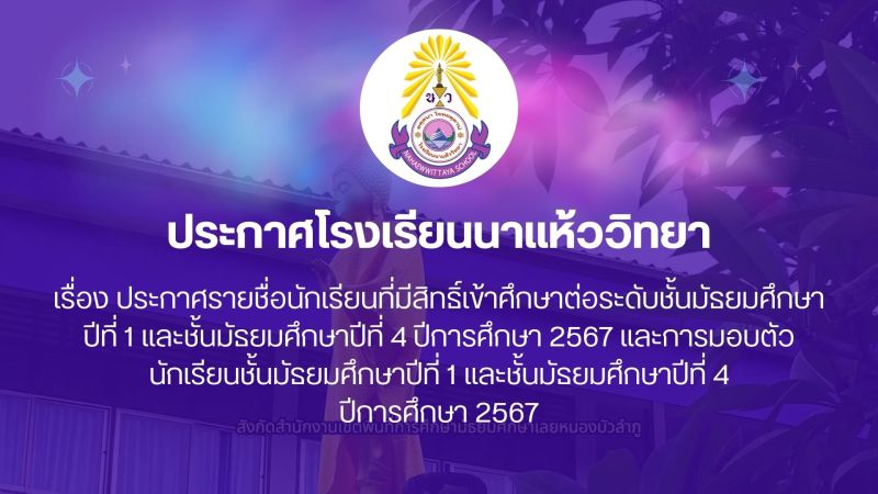 โรงเรียนนาแห้ววิทยา ขอแสดงความยินดีกับนักเรียนที่ได้รับทุนการศึกษา