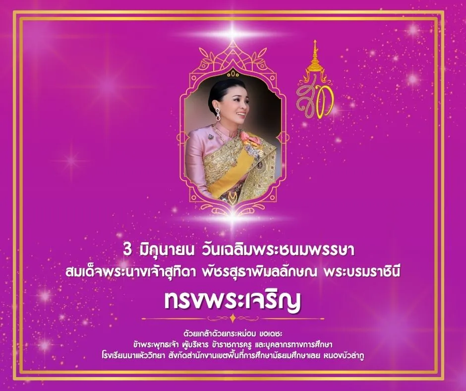 วันเฉลิมพระชนมพรรษา สมเด็จพระนางเจ้าสุทิดา พัชรสุธาพิมลลักษณ พระบรมราชินี ๓ มิถุนายน ๒๕๖๓ ขอพระองค์ทรงพระเจริญ