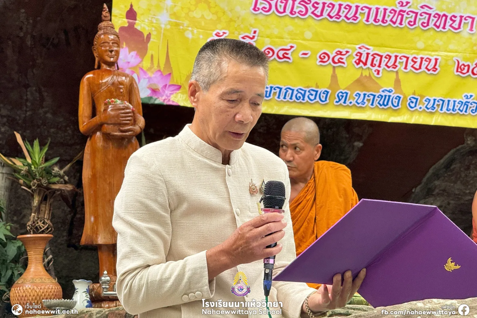 ได้รับเกียตรจาก นายคมสันต์ สุทธิ นายกองค์การบริหารส่วนตำบลนาพึง เป็นประธานในพิธี ภายในกิจกรรม นักเรียนได้ร่วมฟังธรรม ฝึกสมาธิ ปฏิบัติบูชา และร่วมกิจกรรมธรรมะที่เสริมสร้างการพัฒนาจิตใจและการอยู่ร่วมกันอย่างมีสติและเมตตา โดยการดำเนินกิจกรรมได้รับความเมตตาจากพระวิทยากรผู้ทรงคุณวุฒิ ได้แก่ พระครูอนันตสารคุณ พระครูปริยัตินาคนิวิฐ พระครูสันติพัฒโนทัย พระปลัดรุทธชัย ปภาโส พระอาจารย์สุบรรณ ธมฺมโฆสโก พระบุรินทร์ บุรินฺธโร