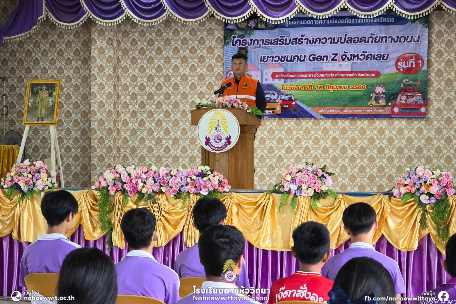 วันที่ 16 มิถุนายน 2568 โรงเรียนนาแห้ววิทยา ร่วมกับ สำนักงานป้องกันและบรรเทาสาธารณภัยจังหวัดเลย จัดโครงการ “เสริมสร้างความปลอดภัยทางถนนในเยาวชนคน Gen Z จังหวัดเลย รุ่นที่ 1” ณ โรงเรียนนาแห้ววิทยา ตำบลนาแห้ว อำเภอนาแห้ว จังหวัดเลย