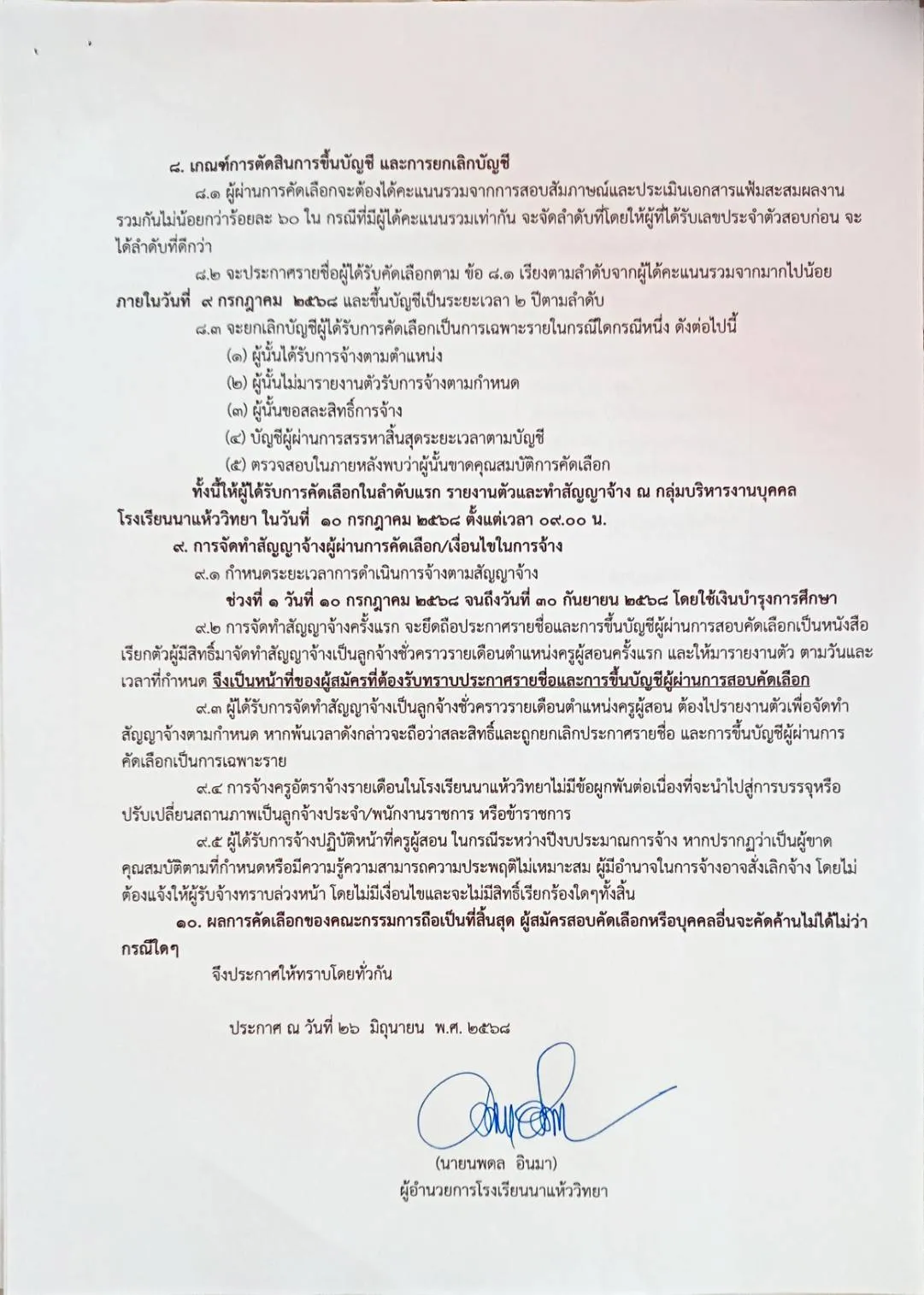 📌 รายงานตัว ทำสัญญาจ้าง และเริ่มปฏิบัติงาน: วันที่ 10 กรกฎาคม 2568 เวลา 09.00 น.