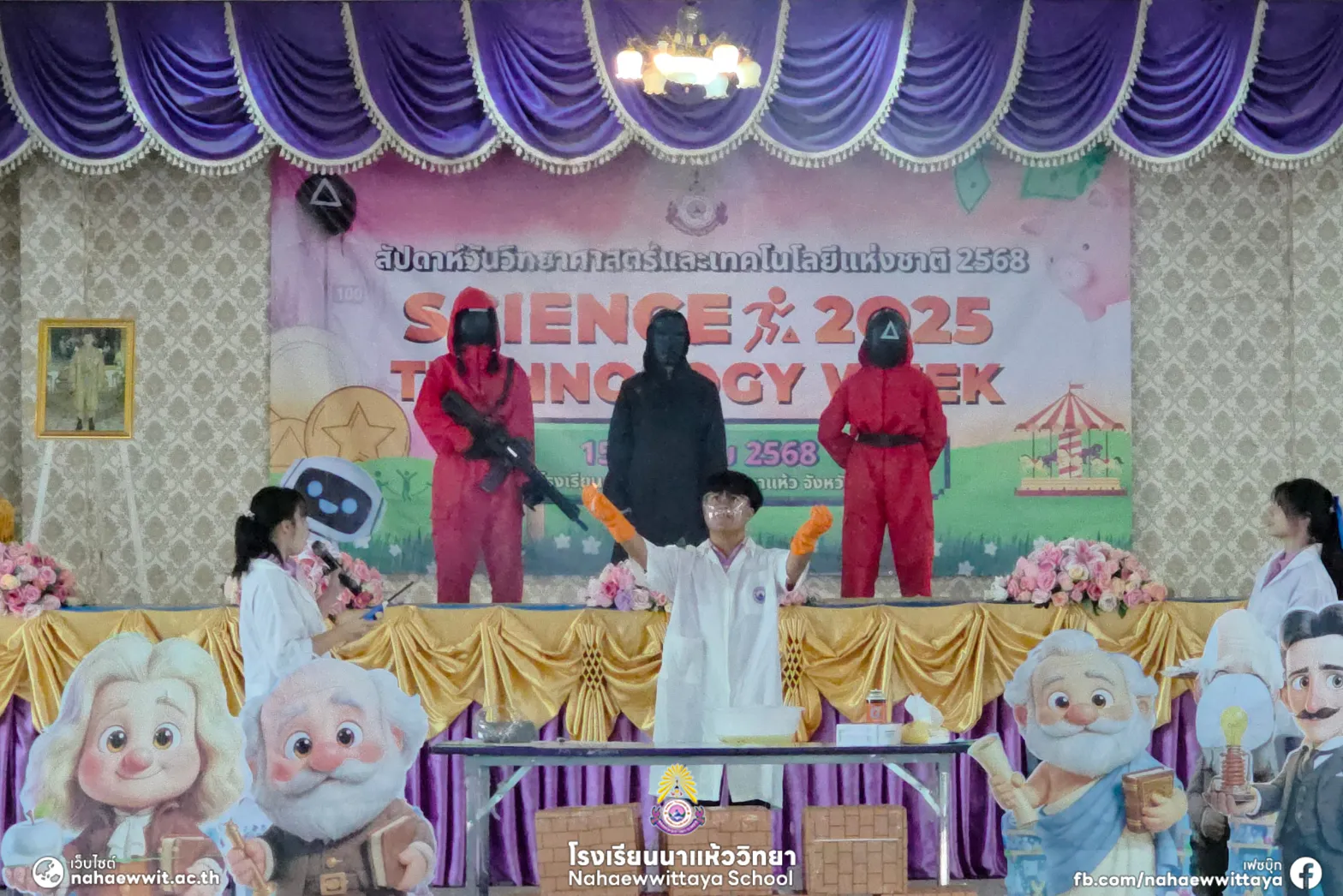 - การแข่งขัน "Squid Game Science Week 2025": เป็นไฮไลท์สำคัญของงานที่ผสานเกมยอดนิยมเข้ากับทักษะทางวิทยาศาสตร์ โดยมีฐานการแข่งขันที่ท้าทายความคิดสร้างสรรค์และไหวพริบของนักเรียน ได้แก่ ฐาน Motion Mastery, ฐาน Dalgona Precision, ฐาน Vortex Blast และฐาน Science Survival Circle.
