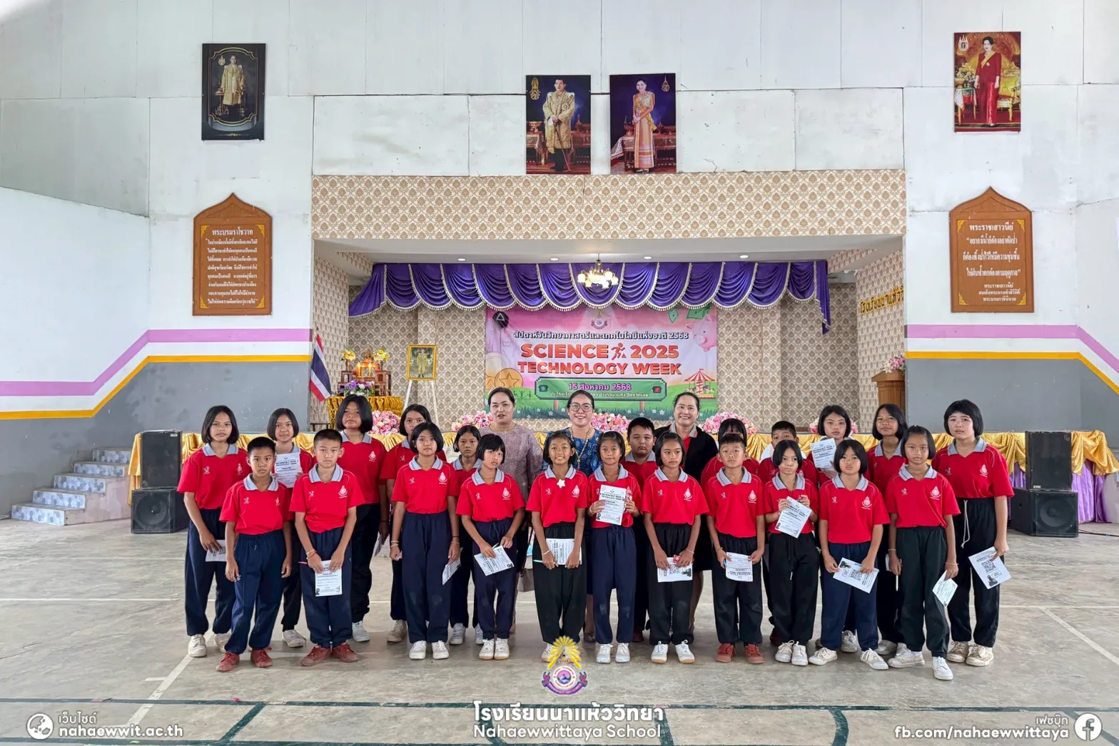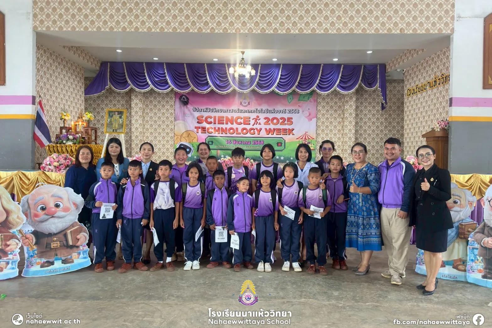 เมื่อวันศุกร์ที่ 15 สิงหาคม 2568 ที่ผ่านมา กลุ่มสาระการเรียนรู้วิทยาศาสตร์และเทคโนโลยี โรงเรียนนาแห้ววิทยาได้จัดกิจกรรม "สัปดาห์วันวิทยาศาสตร์แห่งชาติ ประจำปีการศึกษา 2568" ขึ้นอย่างคึกคัก โดยได้รับเกียรติจาก นายสมบัติ ทิตชิด เป็นประธานในพิธีเปิด กิจกรรมนี้มีวัตถุประสงค์เพื่อให้นักเรียนได้เรียนรู้และฝึกทักษะทางวิทยาศาสตร์และเทคโนโลยีผ่านกิจกรรมที่หลากหลาย. ในปีนี้มีนักเรียนจากระดับประถมศึกษาเข้าร่วมกิจกรรมเป็นจำนวนมาก ซึ่งสร้างบรรยากาศแห่งการเรียนรู้ที่สนุกสนานและเป็นกันเอง.