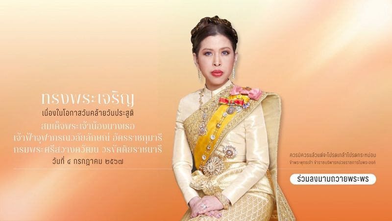 ขอเชิญทุกท่าน บุคคลากรในสังกัด และประชนทั่วไป ร่วมลงนามถวายพระพร สมเด็จพระเจ้าน้องนางเธอ เจ้าฟ้าจุฬาภรณวลัยลักษณ์ อัครราชกุมารี กรมพระศรีสวางควัฒน วรขัตติยราชนารี เนื่องในโอกาสวันคล้ายวันประสูติ