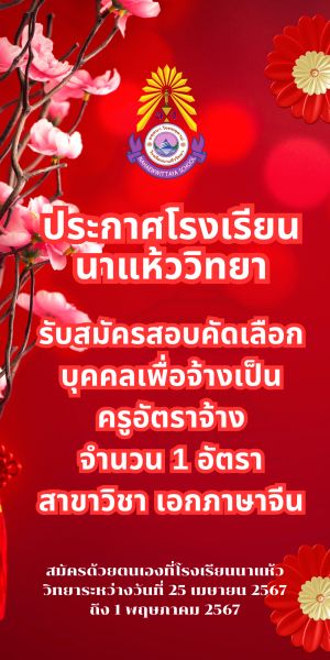ประกาศโรงเรียนนาแห้ววิทยา เรื่อง รับสมัครคัดเลือกบุคคลเพื่อจัดจ้างเป็นลูกจ้างชั่วคราว ตำแหน่ง ครูผู้สอน สาขาภาษาจีนxa0