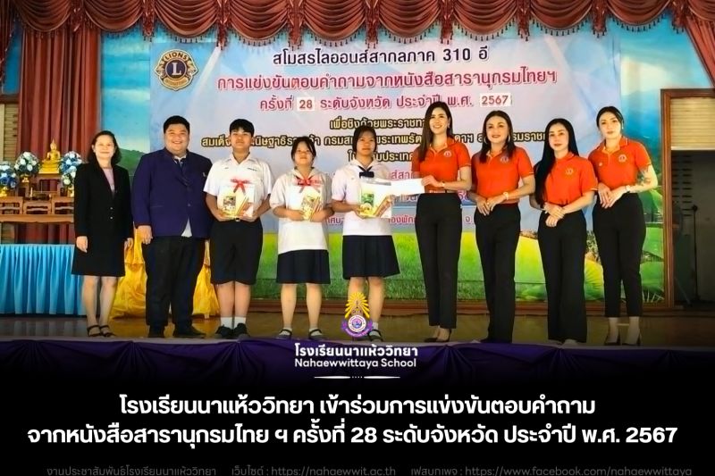 โรงเรียนนาแห้ววิทยา เข้าร่วมการแข่งขันตอบคำถาม จากหนังสือสารานุกรมไทย ฯ ครั้งที่ 28 ระดับจังหวัด ประจำปี พ.ศ. 2567
